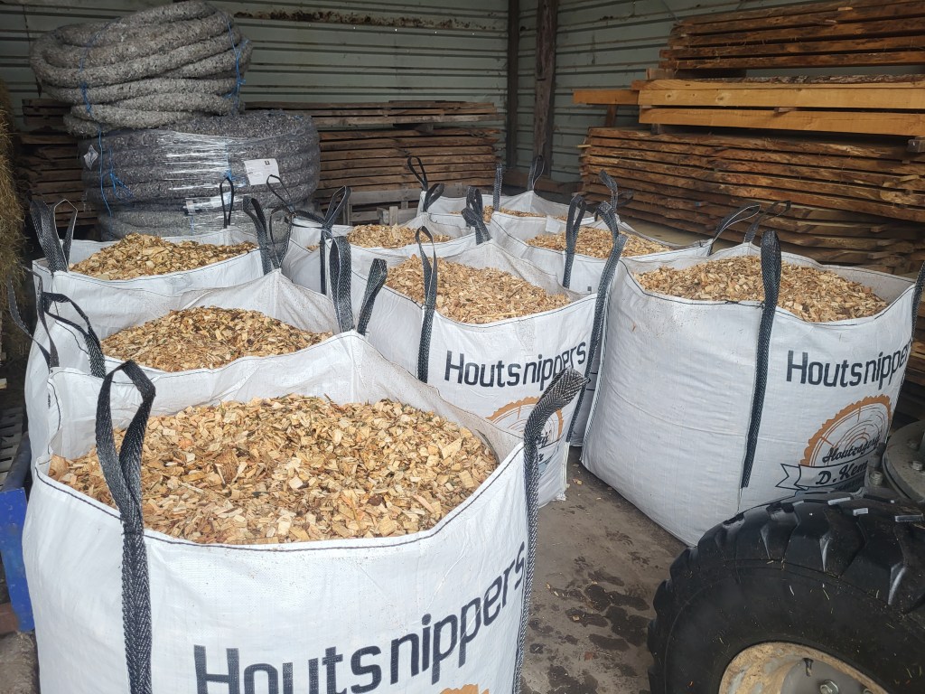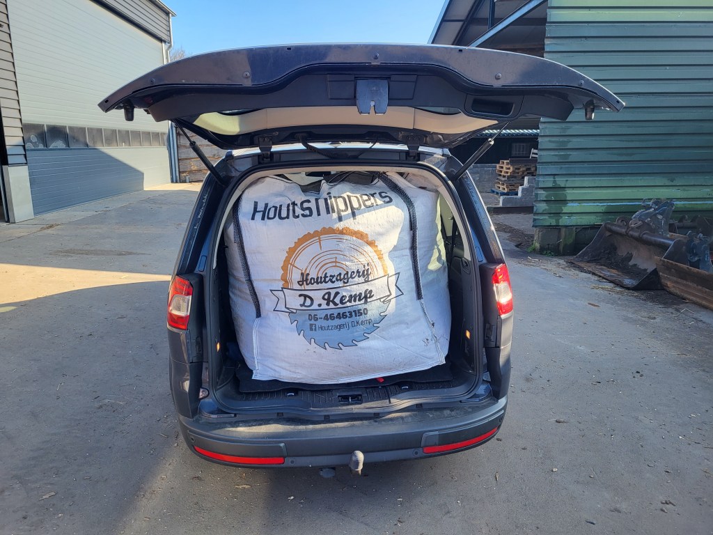 Houtsnippers zijn ook leverbaar in bigbags. Deze kunnen we met de heftruck op uw aanhanger zetten, of achterin een busje schuiven.