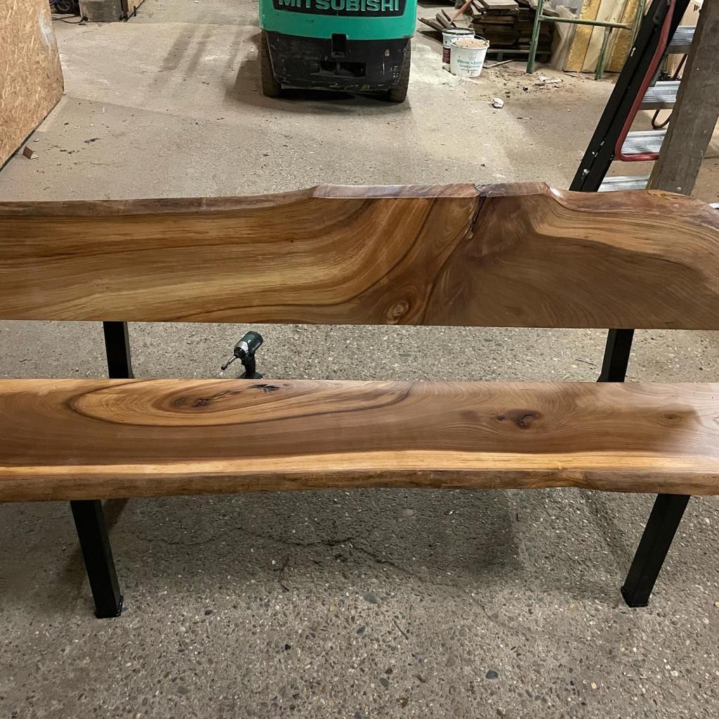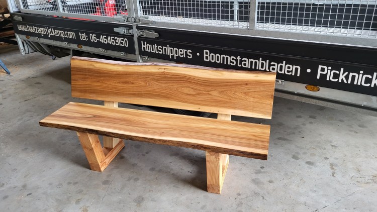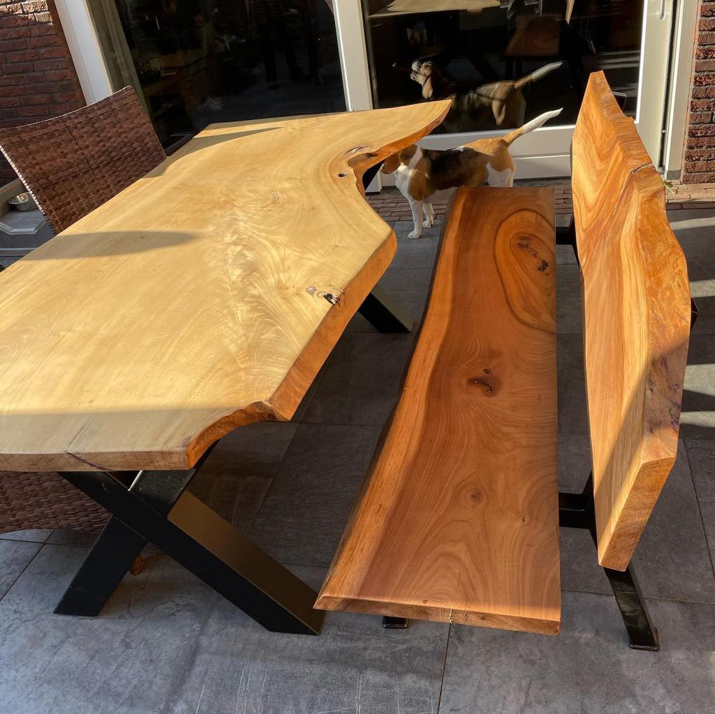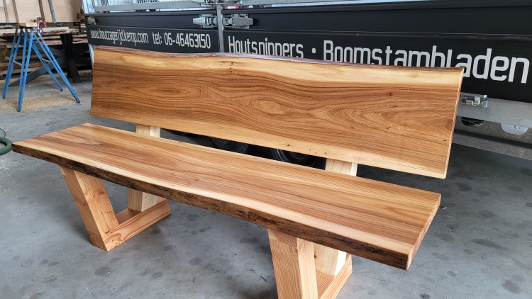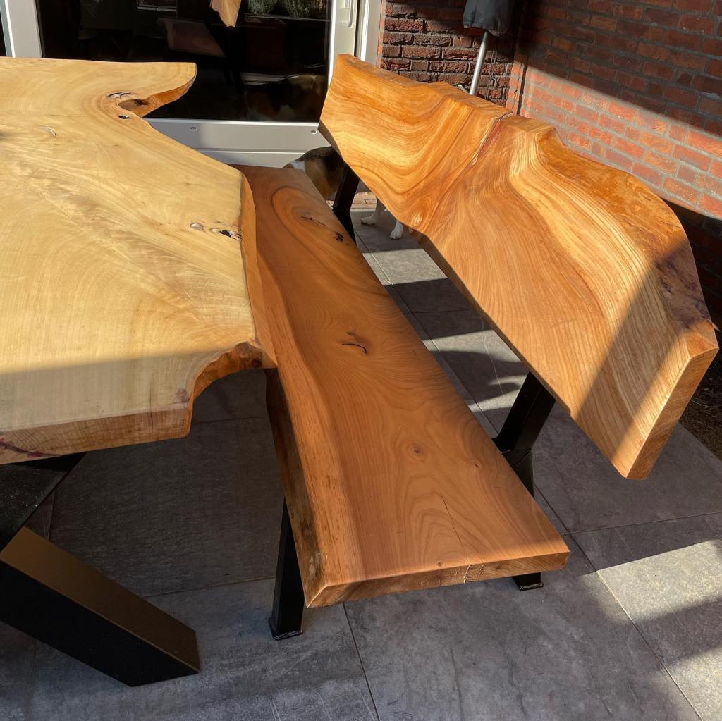 Tuin bankje met tafel van iepen hout