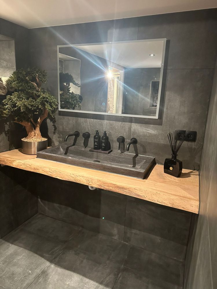 Met trots presenteren we ons recent geleverde badkamermeubel aan een tevreden klant. Dit op maat gemaakte stuk straalt niet alleen vakmanschap uit, maar brengt ook de warme en natuurlijke uitstraling van hout naar de badkamer.