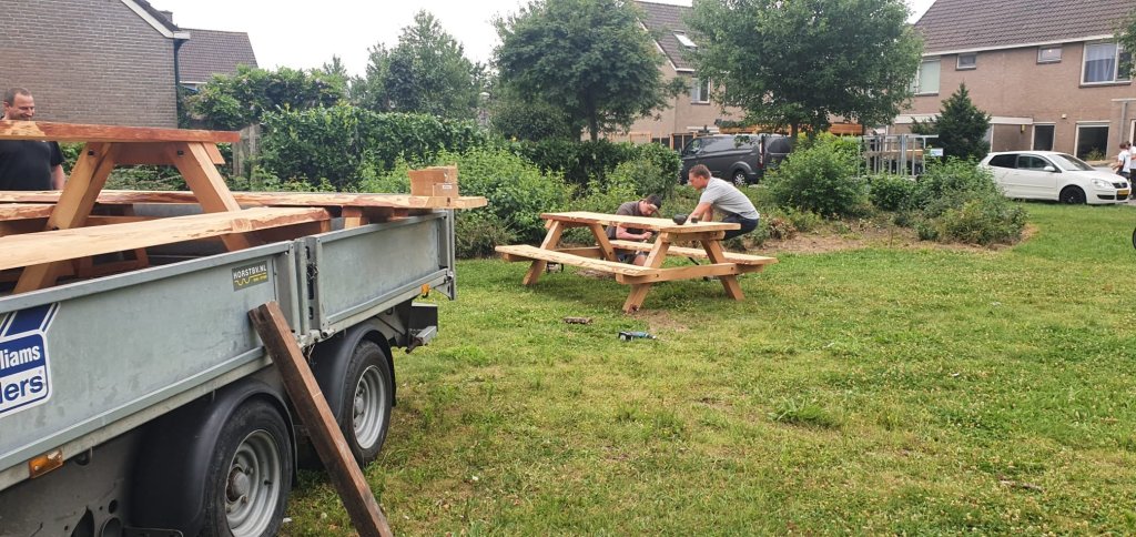 Een tijdje gelden heb ik 2 bankjes en 2 picknick tafels mogen leveren aan wijkcommissie spechtenkamp. Deze spullen zijn geplaatst op diverse plekken in de woonwijk.
